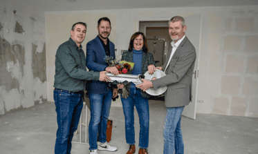 Op maandag 12 februari is de eerste woning van nieuwbouwproject Harmonie opgeleverd. Dit moment vierden we feestelijk samen met de eerste bewoners en wethouder Jannes van der Heide, Phillip Smits (Blauwhoed) en Albert-Jan Moerma (Stebru). Het nieuwe appartementengebouw bestaat uit 25 appartementen en 2 penthouses.