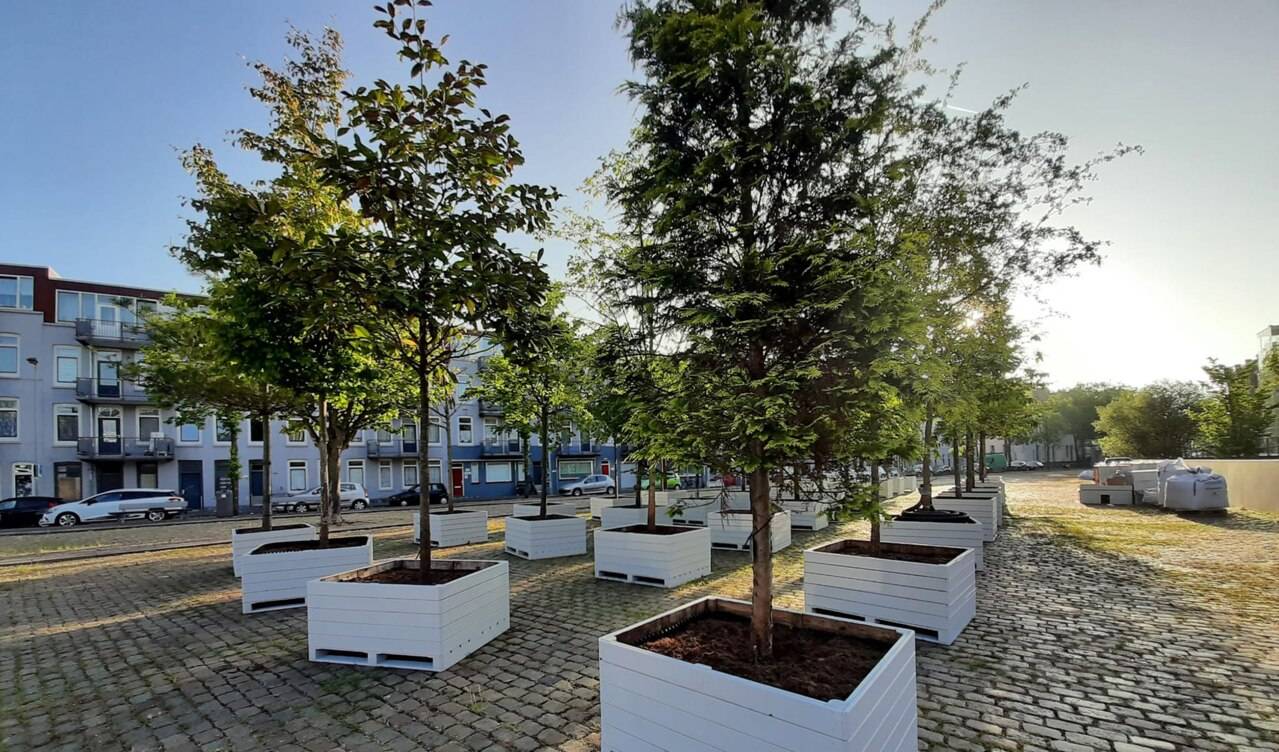 Daar waar we een tijdje het bos hebben neergezet kunnen we een permanente groene ontmoetingsplaats ontwerpen. Samen met de direct omwonenden en een landschapsontwerper kunnen we een stukje grijs omvormen naar een fijne groene plek. Als er een boom uit het Bos op Poten goed zou staan op de permanente locatie dan kunnen we die ook op die plek achterlaten (en planten we weer een nieuwe boom in de lege bak). We kunnen een bankje of een ander mooi element ontwerpen, waarna de gemeente dit kan realiseren en financieren.